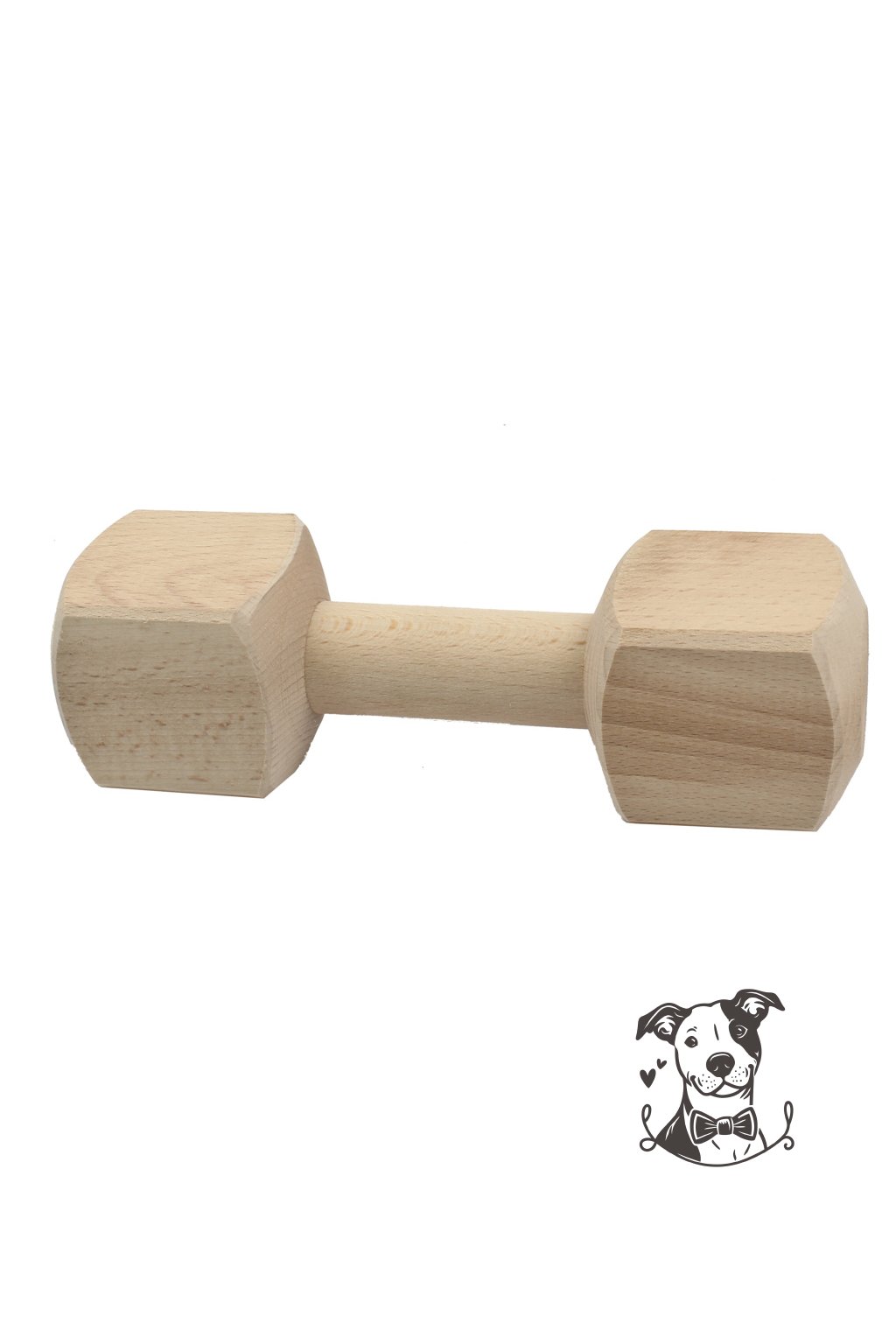 Přírodní, dřevěná aportovací činka pro malé nebo středně velké psy, o hmotnosti 250g.