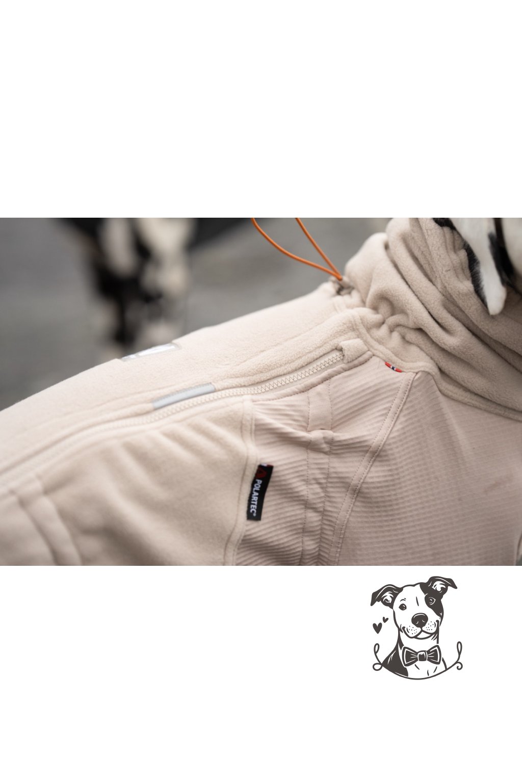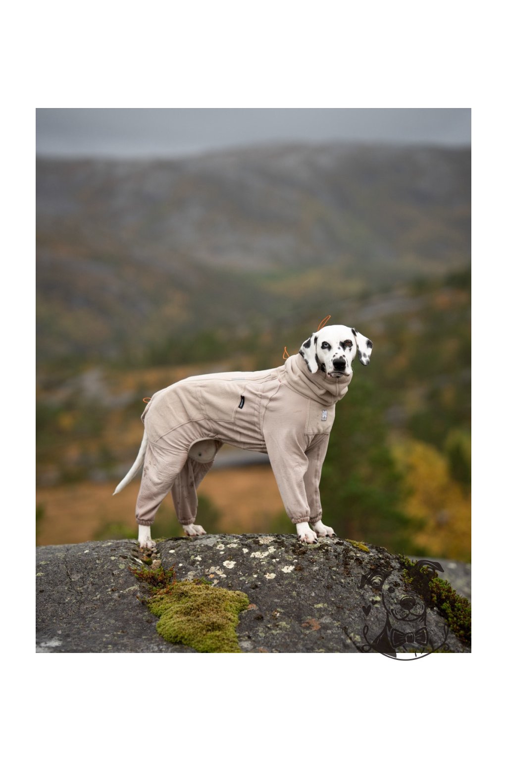 Trail quest fleece overall je celotělový psí obleček pro chladné a suché podmínky. Využívá Polartec® fleece v kombinaci s prodyšnými grid panely na hrudi, břiše a nohách, které zajišťují prodyšnost a regulaci teploty. Pět nastavitelných bodů a elastické manžety umožňují ideální přizpůsobení velikosti. Overal se snadno obléká díky YKK® zipu a patentce, reflexní prvky 3M™ zvyšují bezpečnost při snížené viditelnosti. Overall lze nosit samostatně nebo jako spodní vrstvu pod nepromokavou pláštěnku. Hodí se například pro krátkosrstá plemena, psy bez podsady nebo jedince citlivé na chlad.
