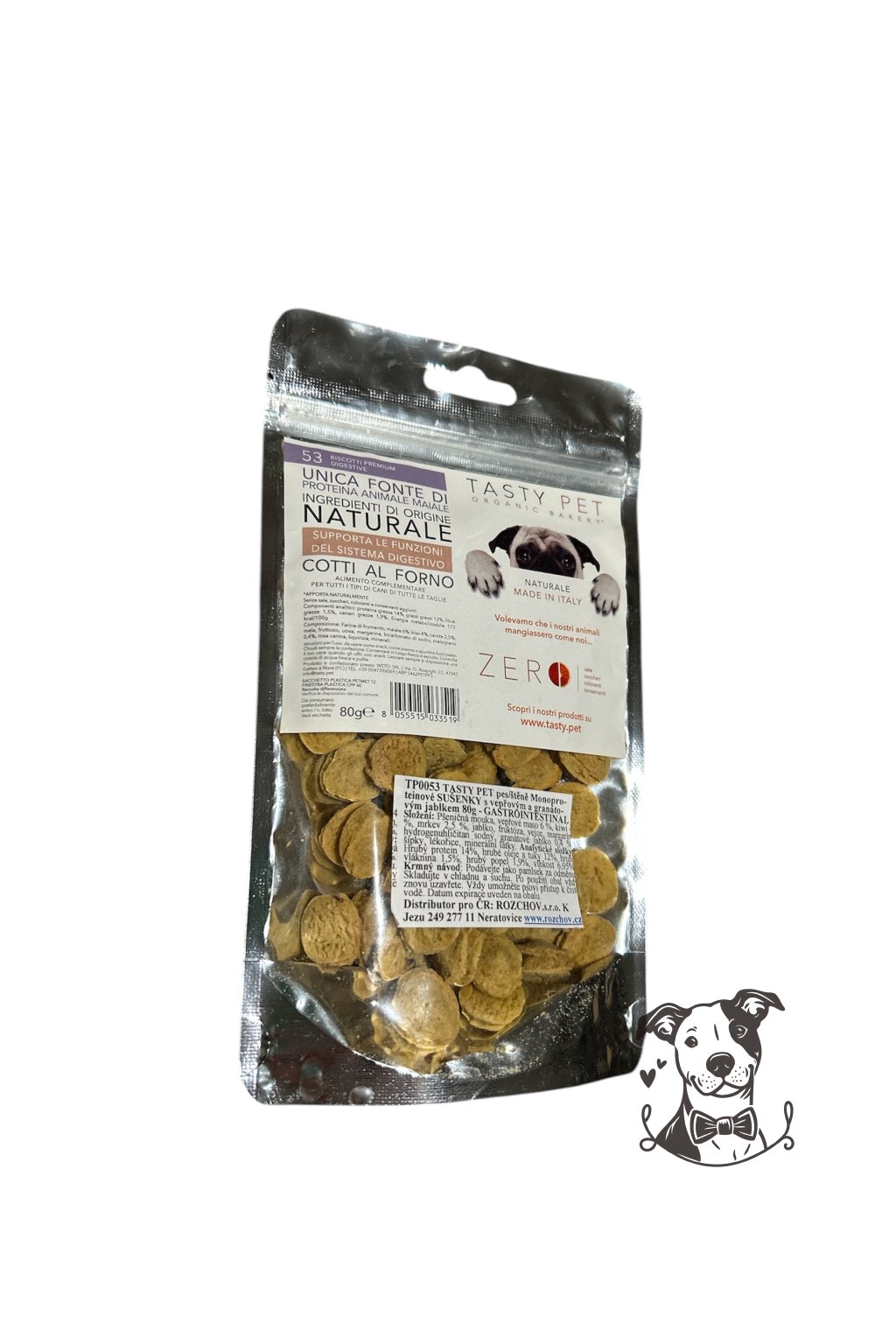 TASTY PET adult/puppy Monoproteinové sušenky s vepřovým a granátovým jablkem GASTROINTESTINAL 80g