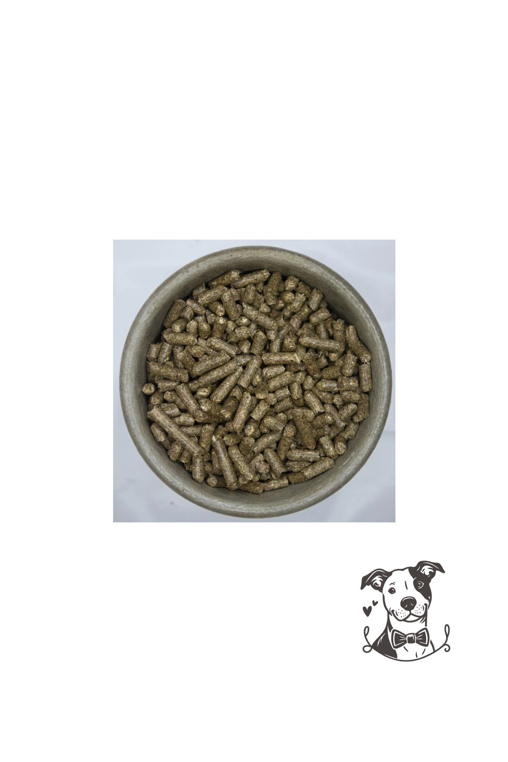 Granulované seno pochází z českých luk, které jsou obhospodařovány udržitelným způsobem. Po sklizni se seno suší, trochu namele a lisuje do granulí bez přídavku chemických látek. Díky tomu si zachovává vysoký obsah vlákniny, minerálů a přirozenou chuť.