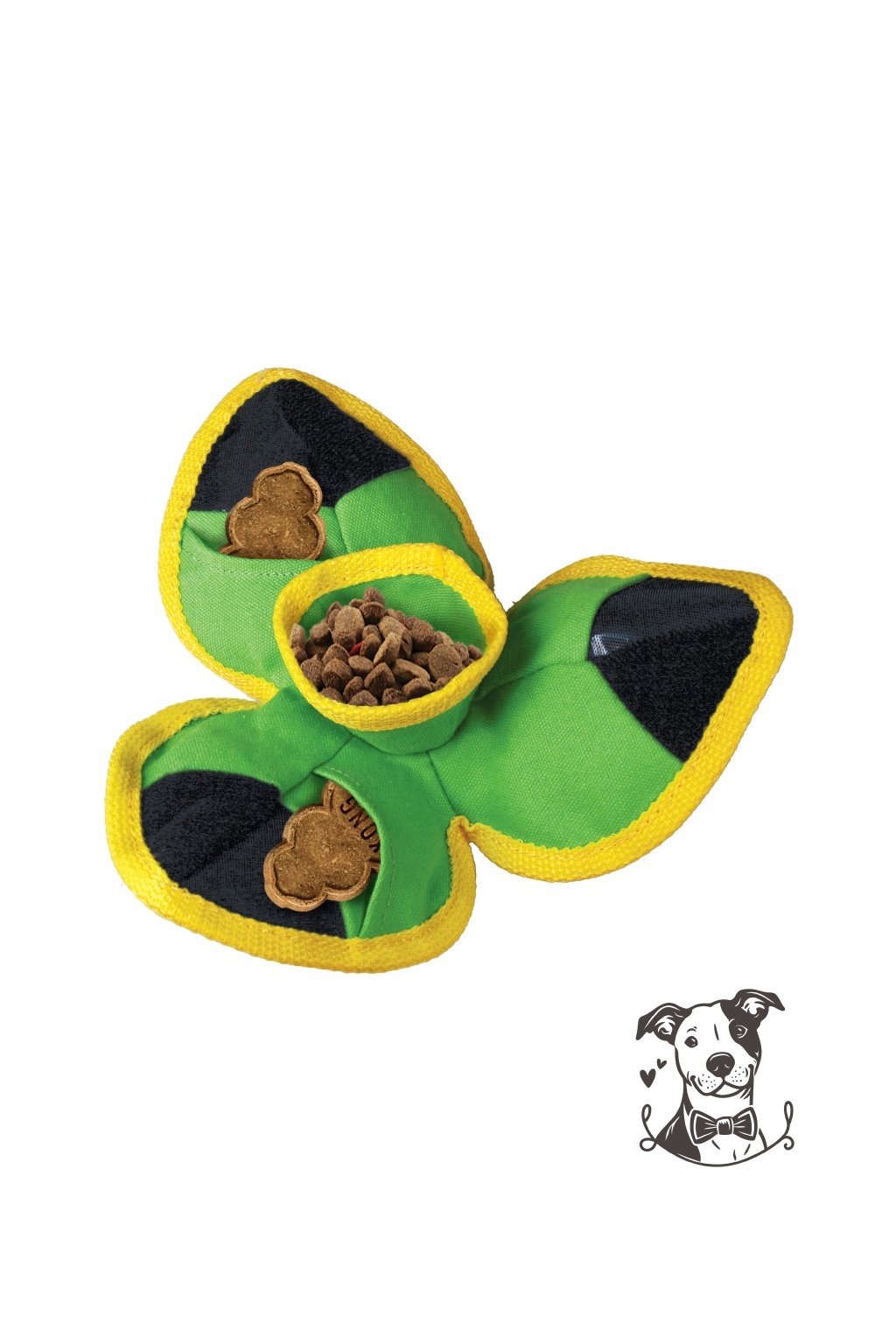 Můžete ji používat jako klasický míč pro házení a aportování, nebo ji proměnit v interaktivní hlavolam – do ukrytých kapes vložte oblíbené pamlsky a sledujte, jak váš pes zapojuje čich, zuby i tlapky, aby se k odměně dostal.