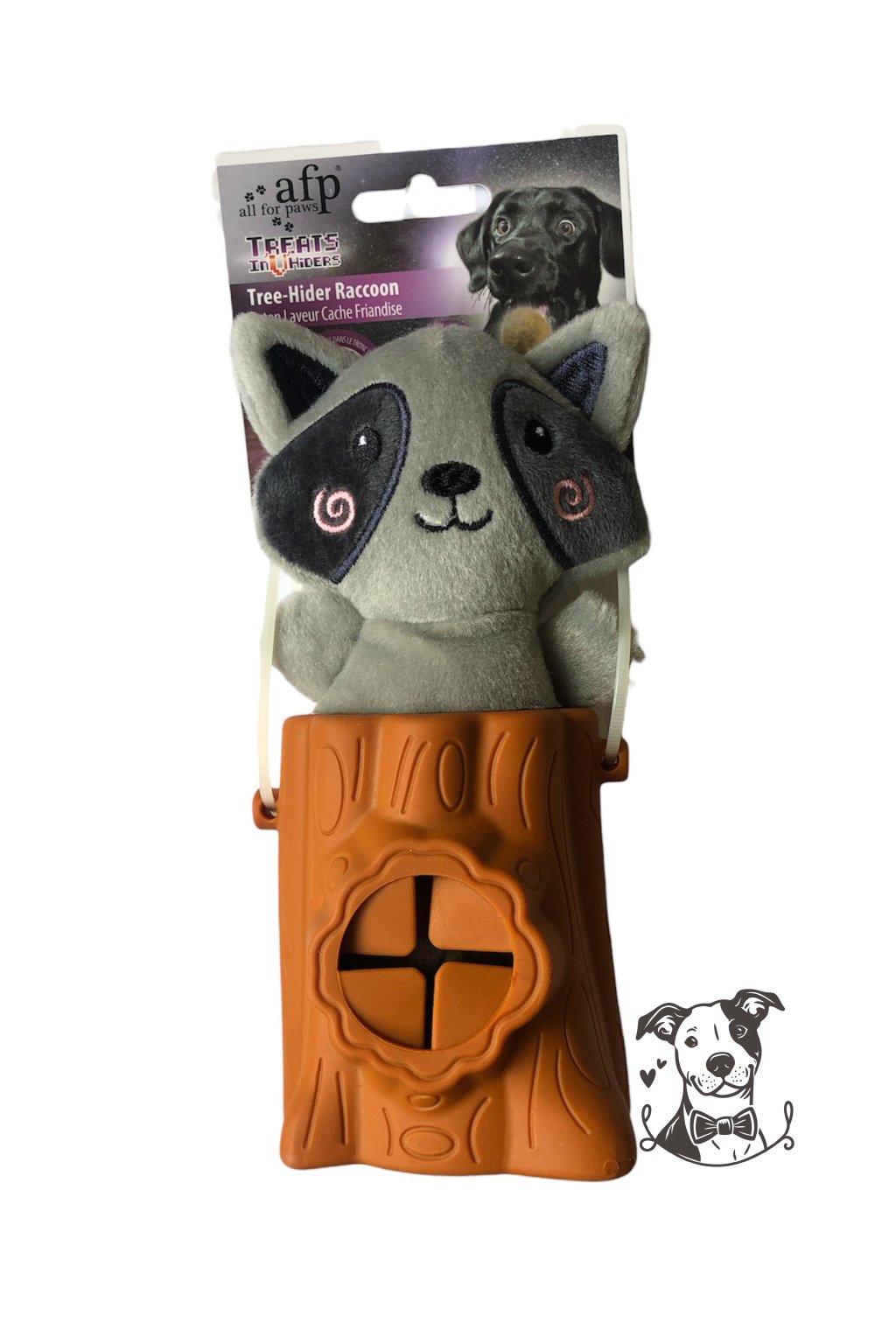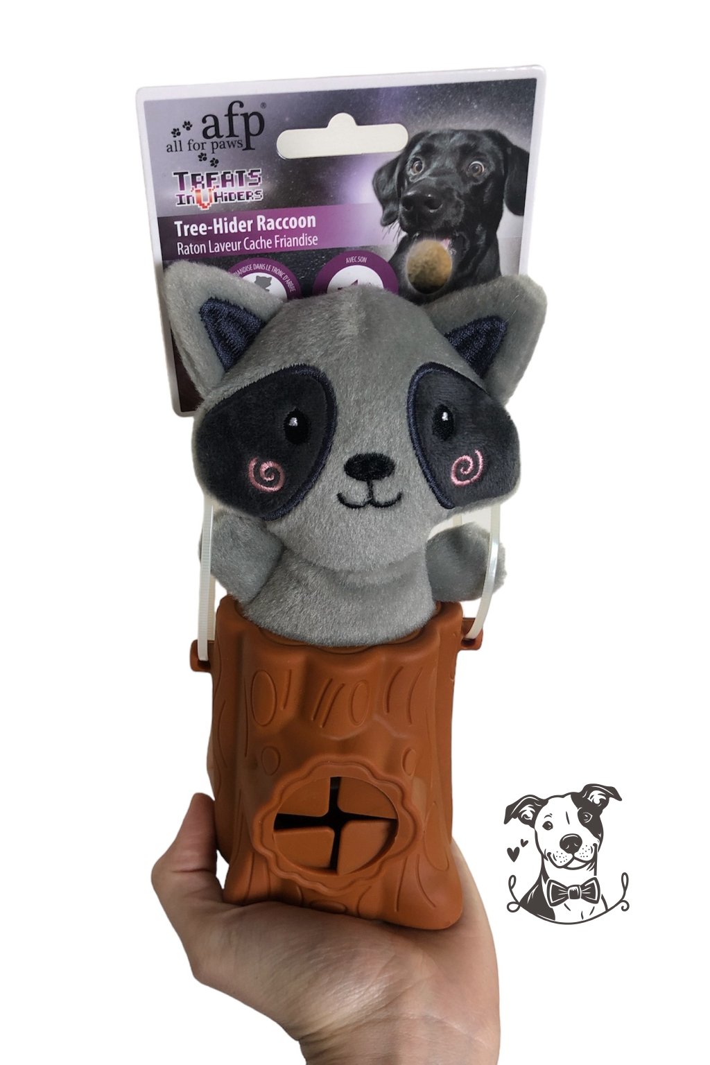 Dostaň mě ven a dostaneš spoustu dobrot! – Mýval schovaný ve stromě vyzývá vašeho chlupáče ke hře.