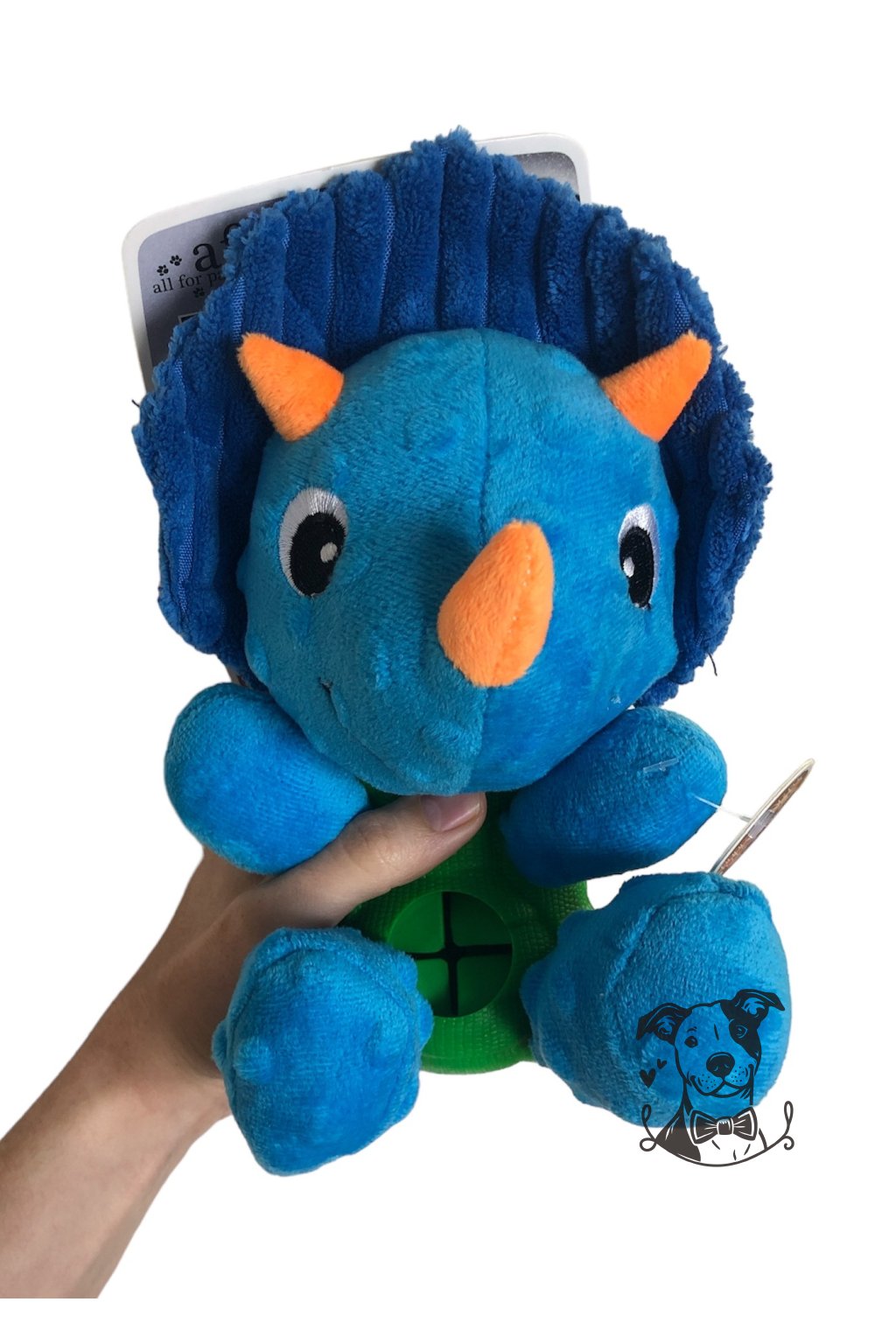 Treat-ceratops je navržen tak, aby zabavil vašeho pejska po dlouhou dobu. Jeho kombinace plyšového materiálu a pevného gumového těla znamená, že vydrží i u nejaktivnějších pejsků.