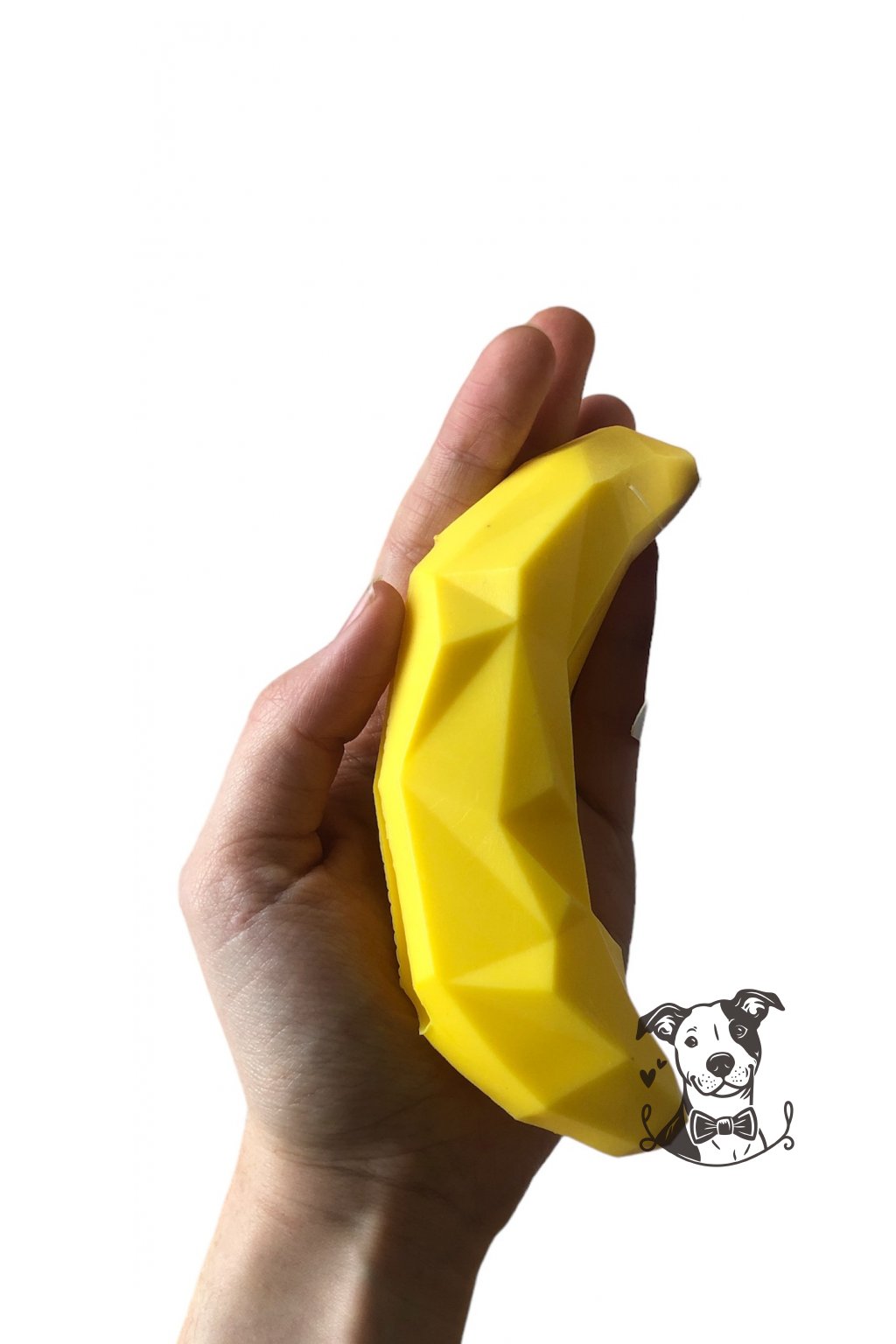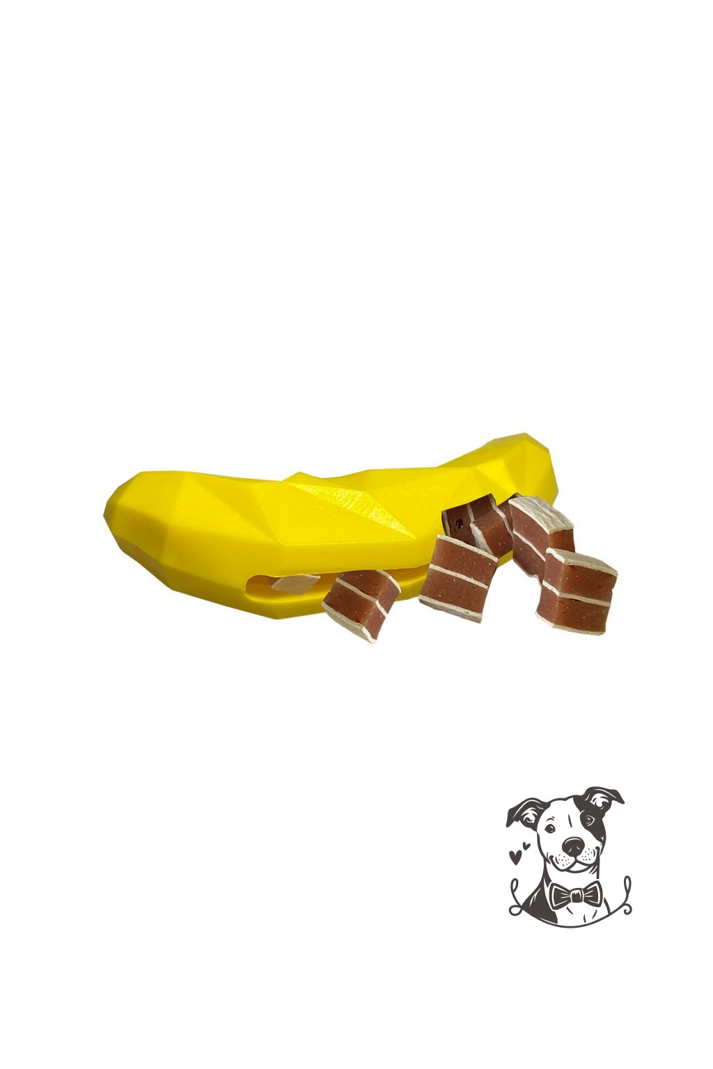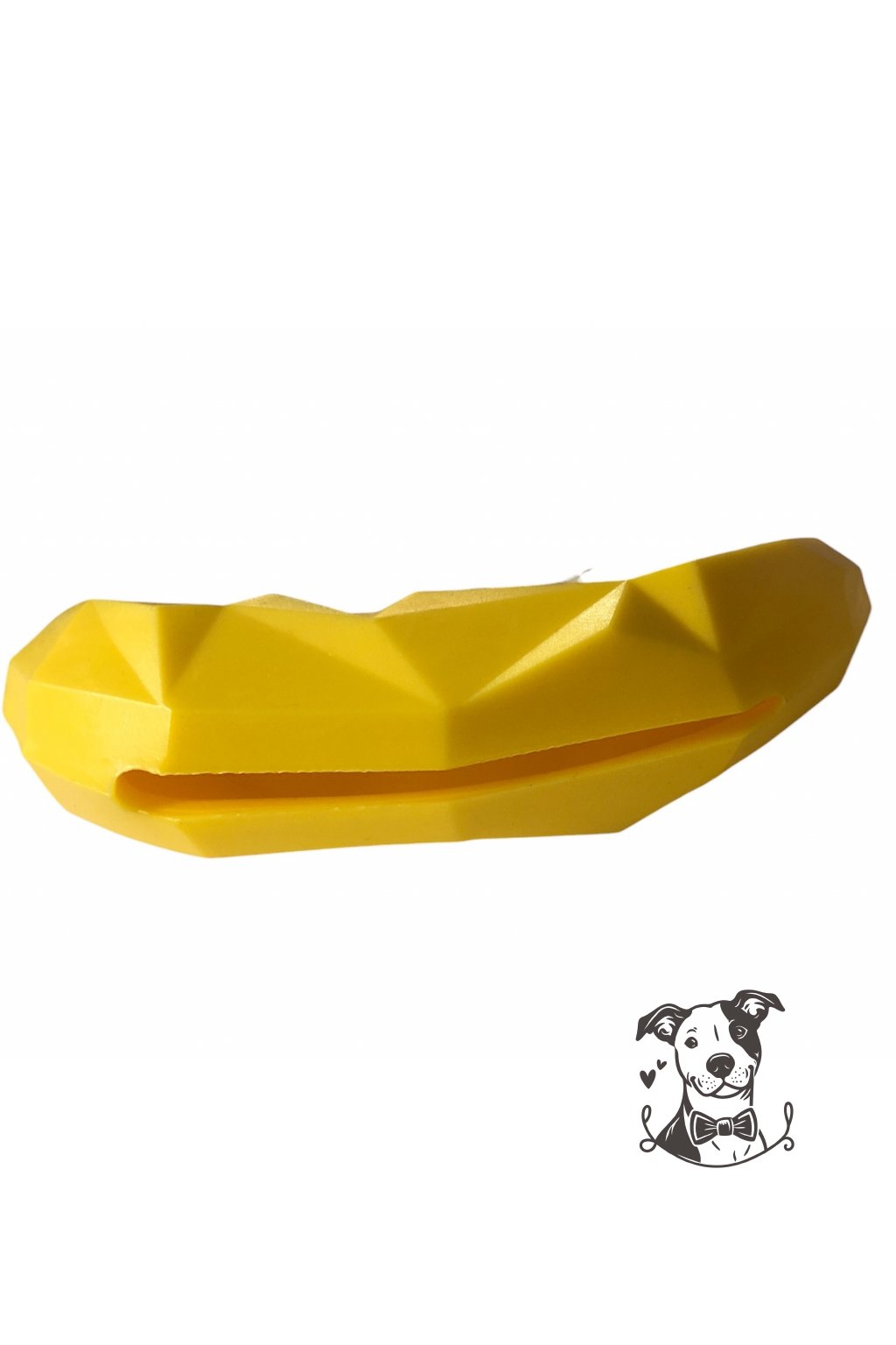 Banán s otvorem na vložení pamlsků, ideální ke hře s pamlsky a noseworku. Plovoucí, vhodný k aportování.