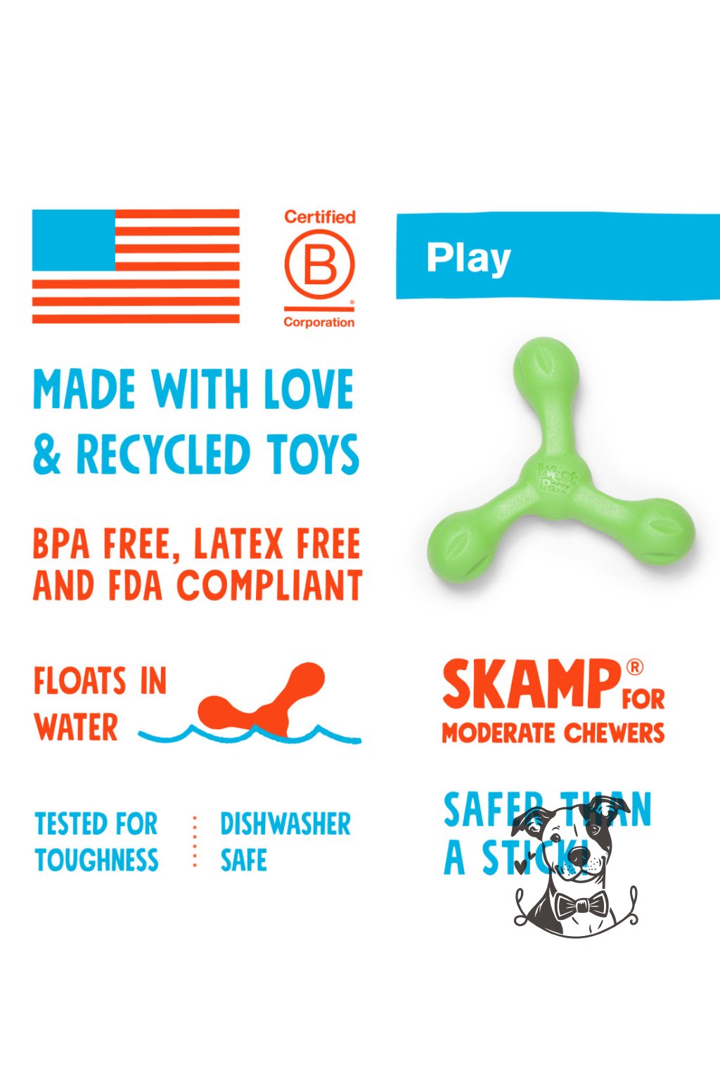 Skamp je pružná, dutá a ohebná hračka, která nahrazuje nebezpečné klacky. Je připravený na jakoukoliv zábavu! Aportování, přetahování, kousání…