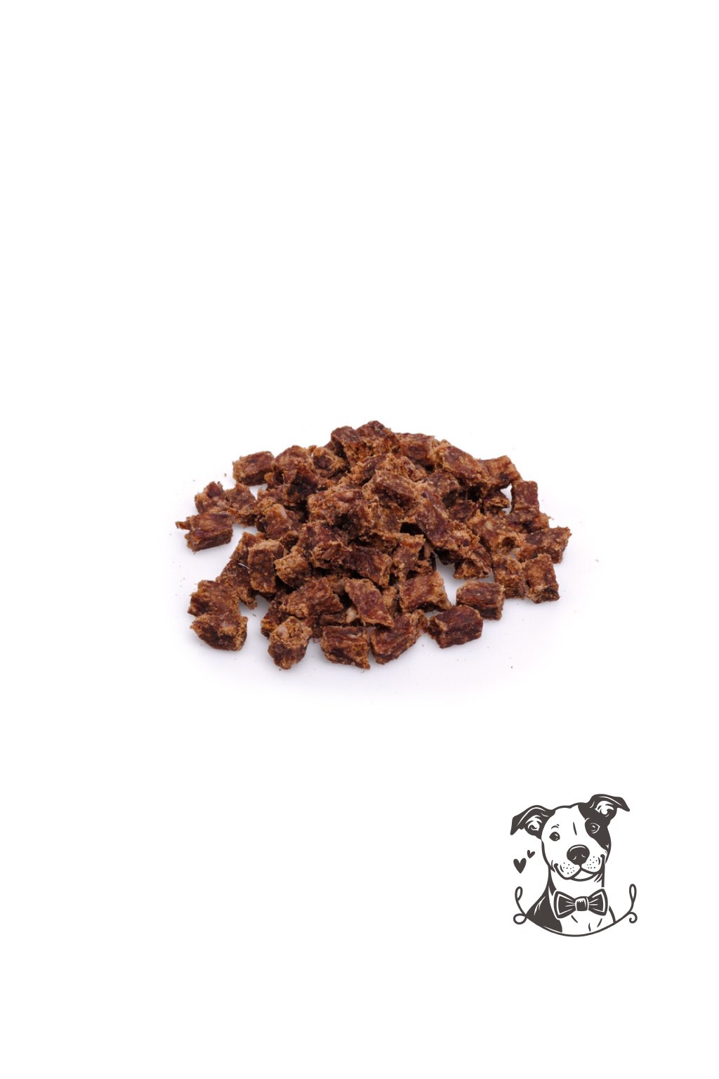 Tréninkové pamlsky z kvalitního jehněčího masa s vysokým obsahem bílkovin – ideální pro podporu svalové hmoty i jako motivační odměna při výcviku. Díky své konzistenci jsou snadno žvýkatelné a vhodné i pro štěňata nebo starší psy. Jehněčí maso je dobře stravitelné, a proto jsou Merino Bites skvělou volbou i pro psy s citlivým zažíváním.