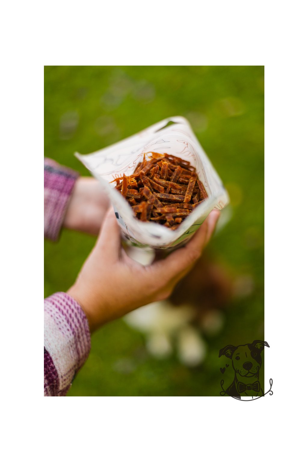 Drobné pamlsky z jehněčího masa. Sušeno horkým vzduchem pro zachování chuti i živin.