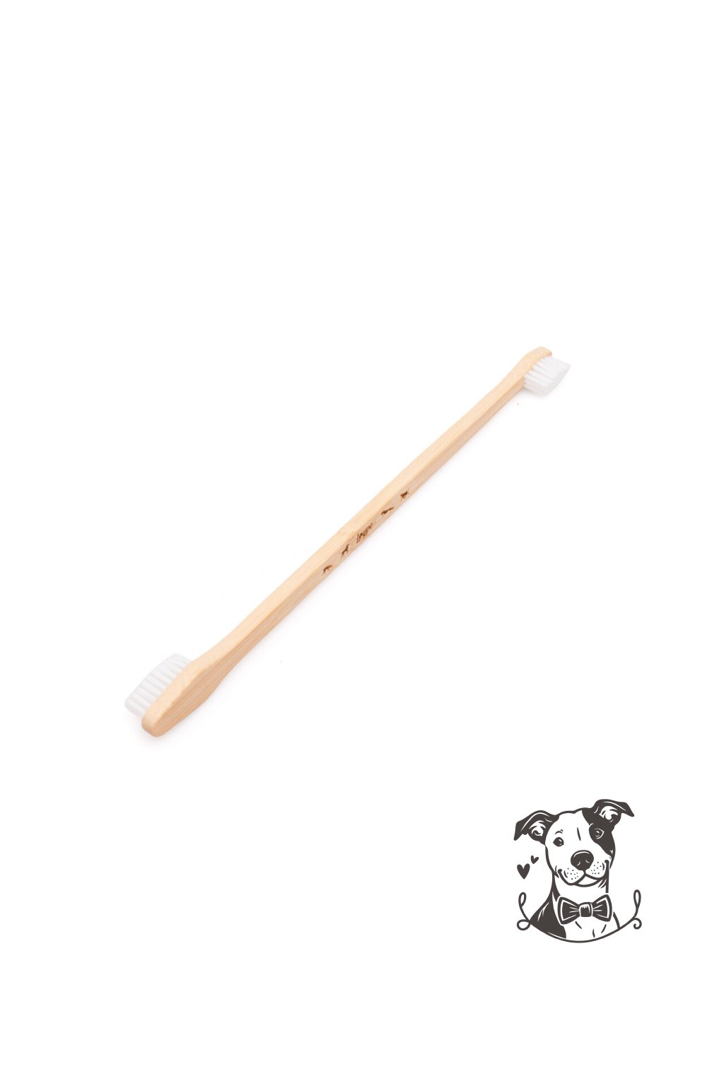 Praktický kartáček pro každodenní péči o psí chrup. Díky dvěma hlavicím je vhodný pro různé velikosti psů a umožňuje čištění předních i zadních zubů. Jemné štětiny pomáhají odstraňovat plak bez podráždění dásní. Bambusová rukojeť je odolná a ekologická.