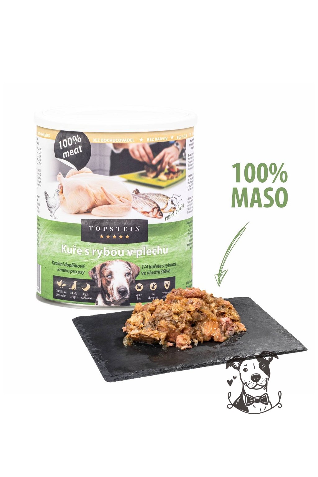 Složení: Čtvrtka kuřete s celými rybami. 100% podíl živočišných bílkovin, 70% kuře, 30% ryba.