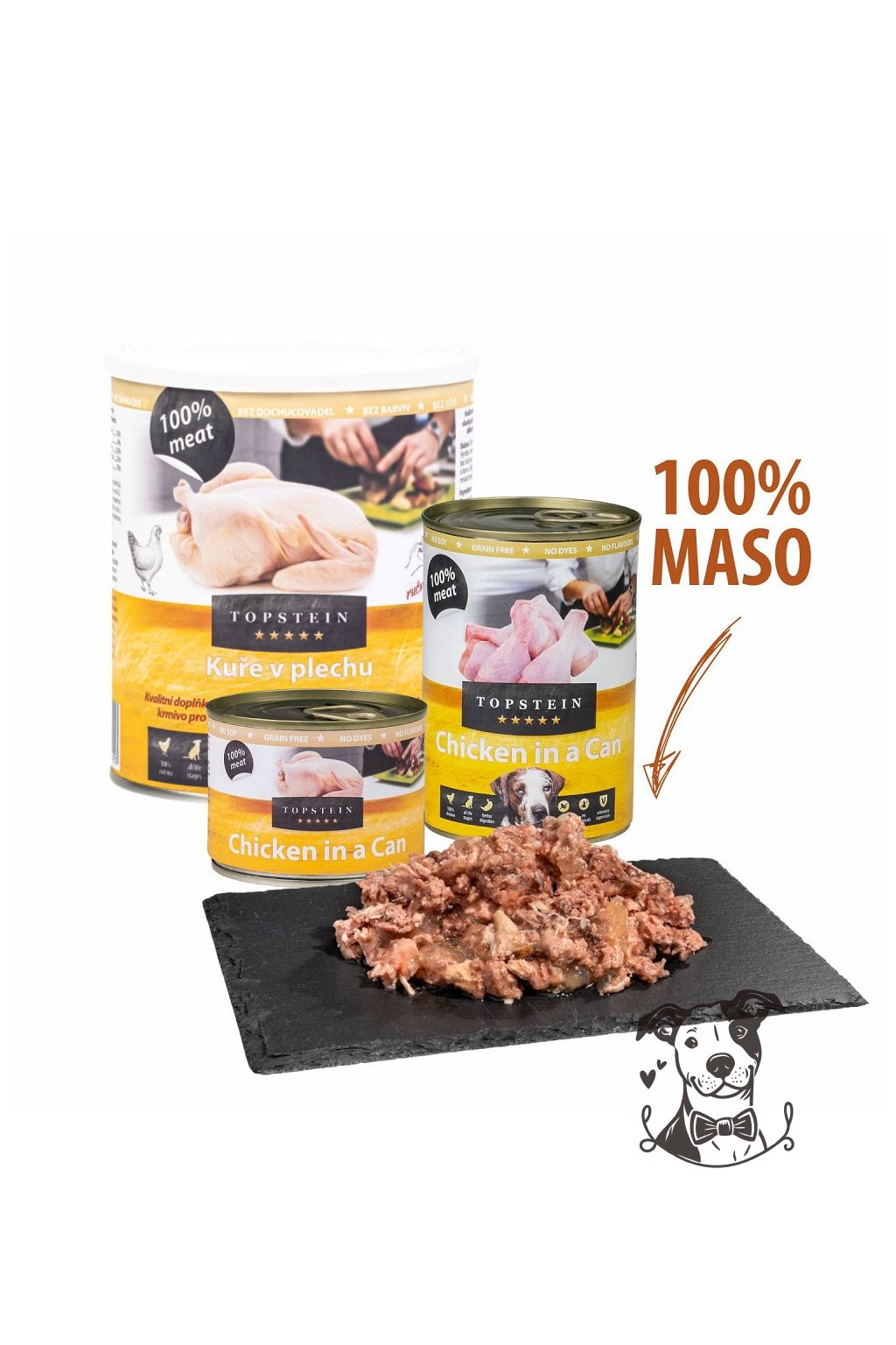 Ručně plněné konzervy v potravinářské kvalitě jsou pečlivě zpracované a přináší nejvyšší kvalitu vstupních surovin. Konzerva je opatřena plastovým víčkem, které uchovává maso v konzervě čerstvé a zároveň zabraňuje zápachu v lednici, vydrží v chladu minimálně 3 dny. Kuřecí kosti v konzervě nejsou nebezpečné, díky sterilizaci při vysokém tlaku a teplotě jsou zcela měkké a lze je rozmáčknout mezi prsty. Konzerva je čistě přírodním produktem té nevyšší kvality!