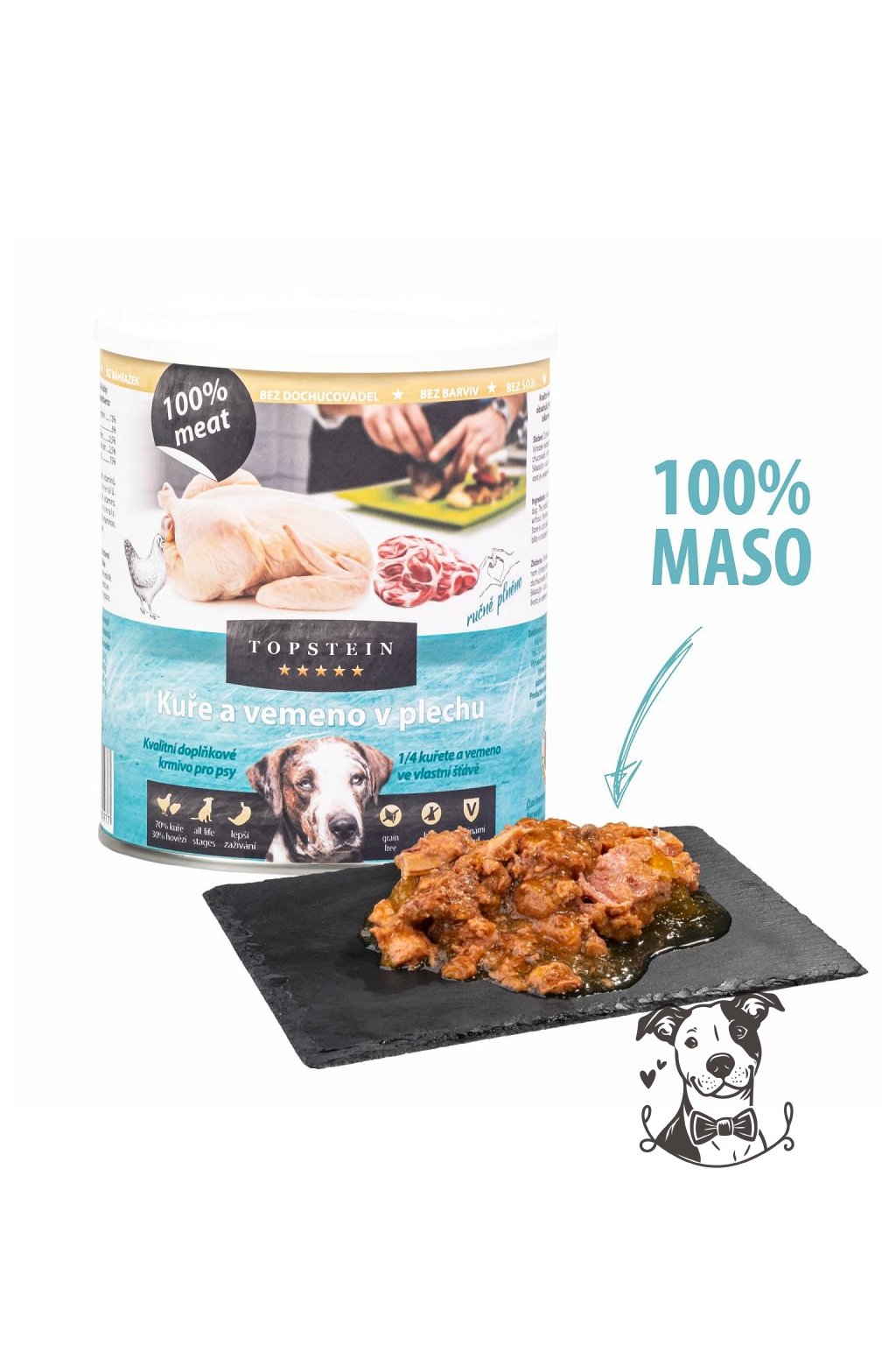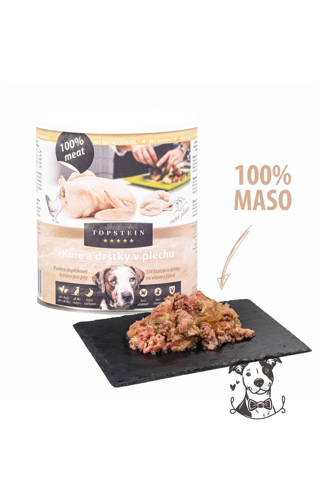 Složení: Čtvrtka kuřete s hovězími dršťkami. 100% podíl živočišných bílkovin.