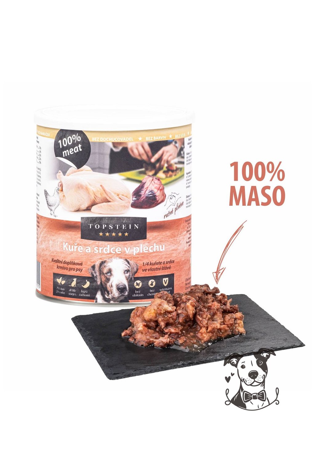 Složení: Čtvrtka kuřete se srdcem. 100% podíl živočišných bílkovin.