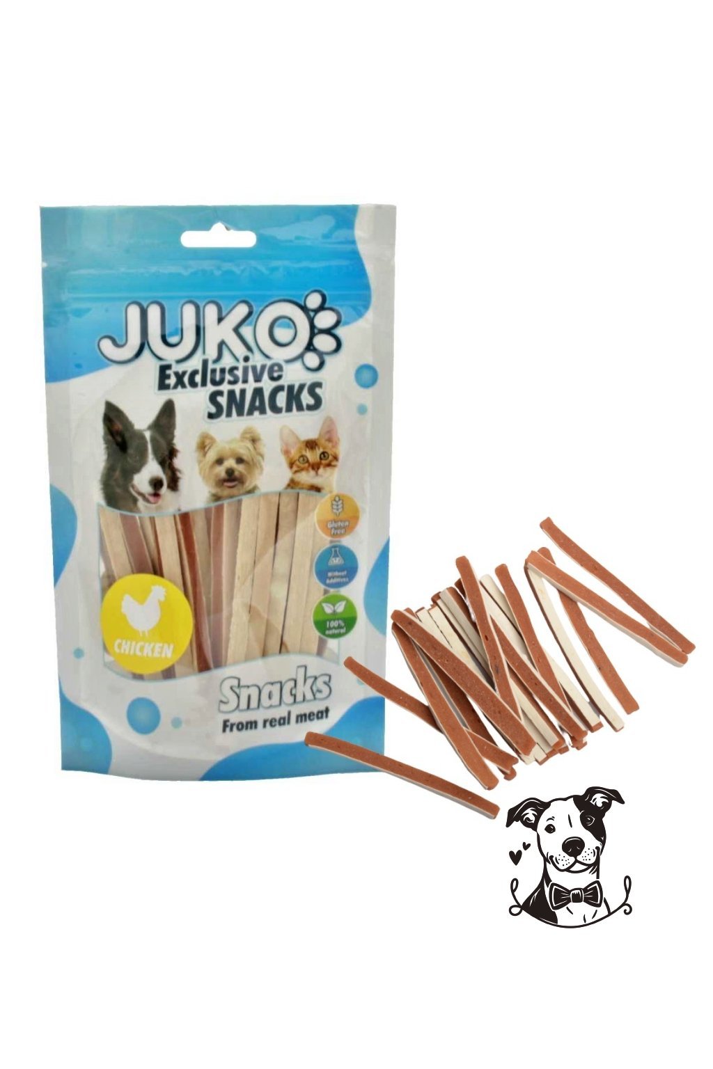 Pamlsky z kuřete a rybí pasty jsou měkké, dlouhé a lahodné. Přídavek kukuřičného škrobu a glycerinu jim dodává vlákninu a vlhkost. Jsou vyrobeny z kvalitních surovin a neobsahují obiloviny, lepek, barviva, ochucovadla ani umělá aromata.
