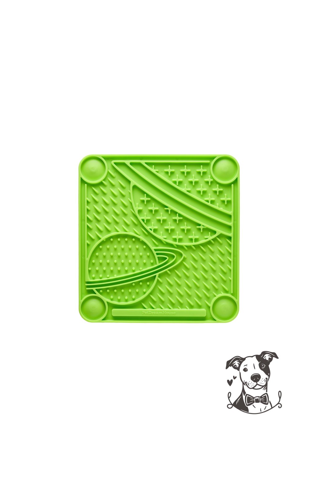 Lízací podložka (lick pad) s motivem planet a rozmanitými druhy povrchů.