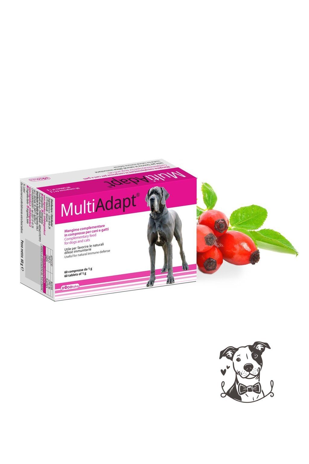 - Tím, že MultiAdapt – na imunitu a otoky u psů – obsahuje hojné množství řasy Spirulina, vitamínu B(především B12), echynacey, šípku a kozince, stává se pro organizmus velmi účinným a zároveň šetrným.