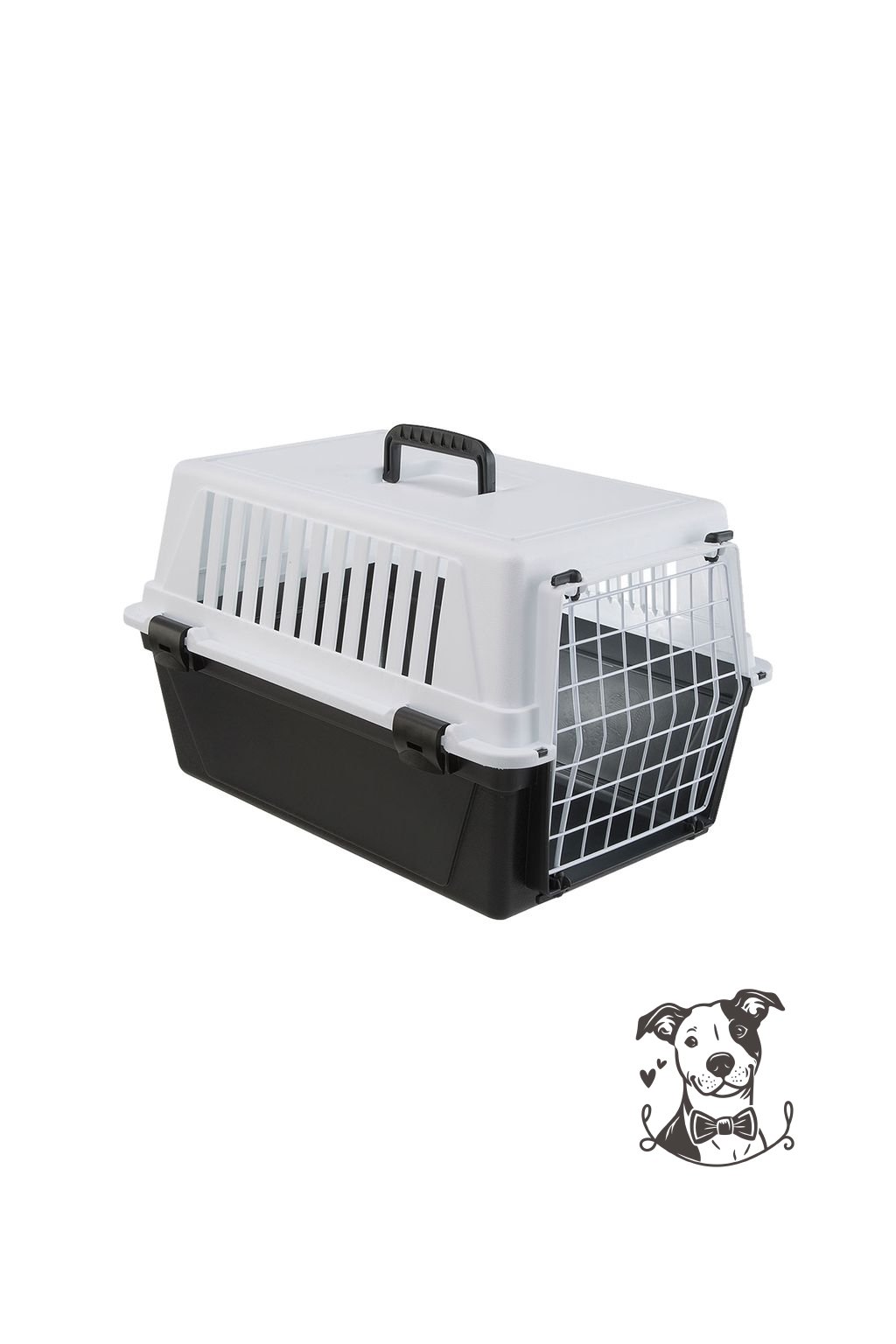 Přední dveře jsou vyrobeny z pevného plastu a vybaveny spolehlivou uzavírací sponou, která zabraňuje nechtěnému otevření při cestování. Větrací otvory po všech stranách zajišťují stálý přísun čerstvého vzduchu a příjemnou teplotu uvnitř boxu.