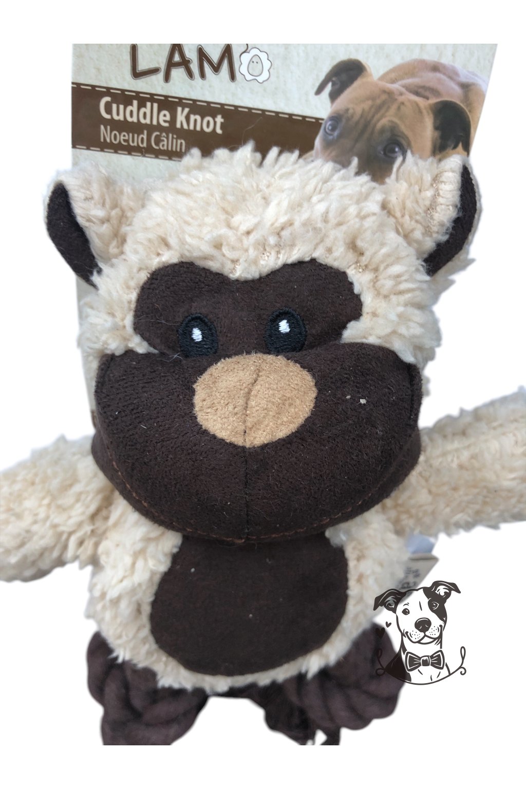 Místo nožek má lanové uzlíky, hodí se tedy i pro pejsky, kteří své hračky rádi žužlají a žvýkají.