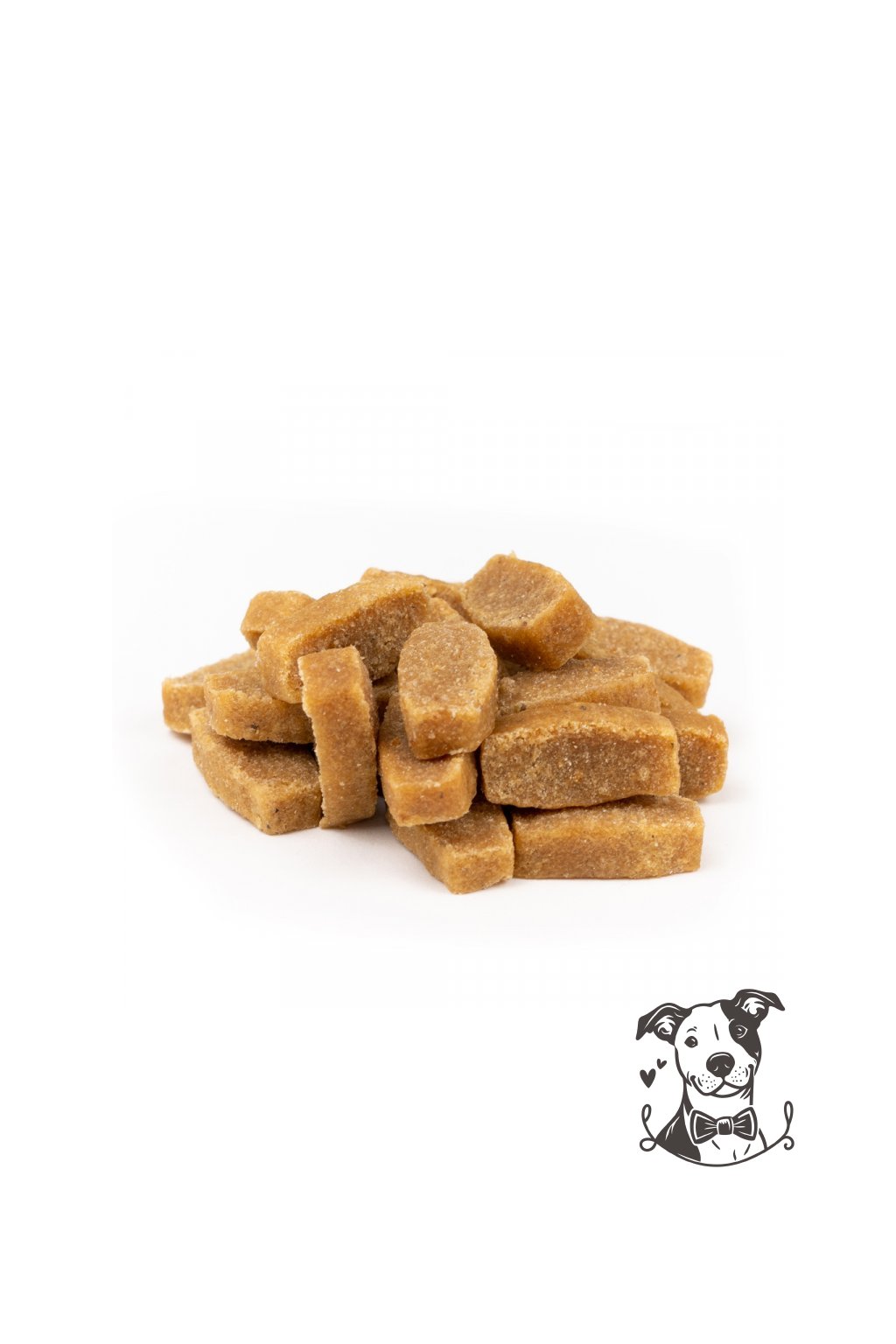 Poloměkký pamlsek bez obsahu obilovin je vhodný pro psy všech plemen . Pamlsek za odměnu.