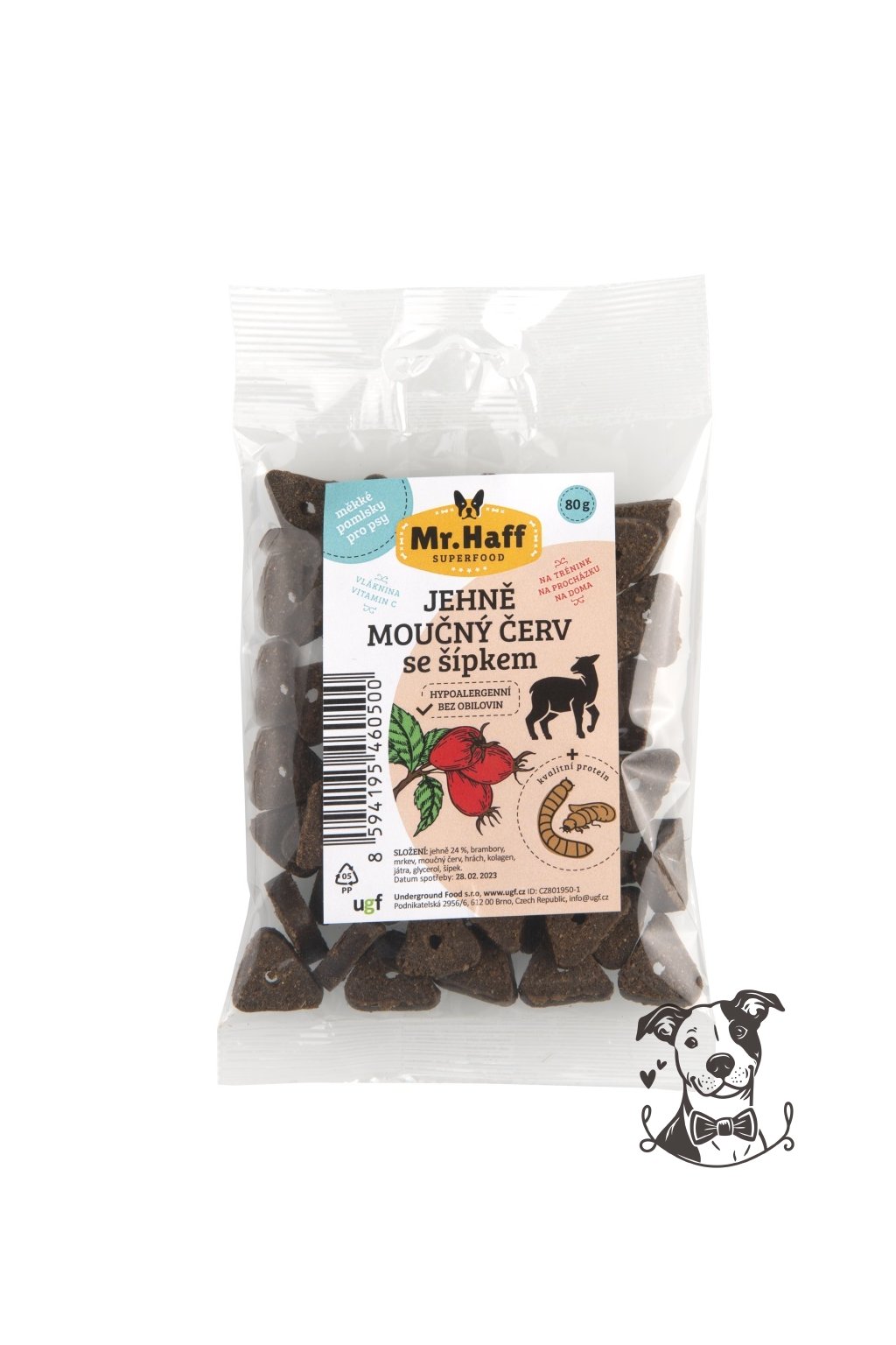Hledáte pro svého čtyřnohého kamaráda zdravé a chutné pamlsky? Pak byste měli vyzkoušet ty od firmy Mr. Haff, která vám nabízí své jedinečné dobroty. Tento pamlsek si váš pejsek určitě oblíbí. Je vyrobený jen z čerstvého masa, zeleniny a bylinek. Tyto pamlsky se pyšní obsahem tzv. superfood - superpotravin. Ty prodlužují život psa, dodávají mu cenné živiny a dělají pamlsky funkčními.