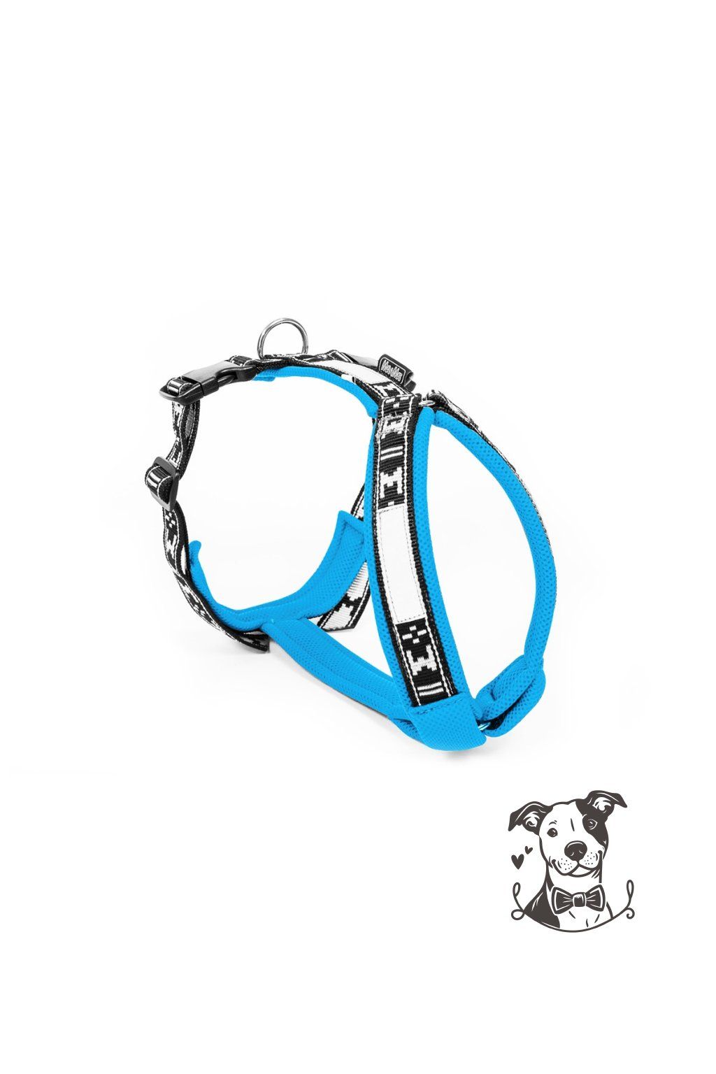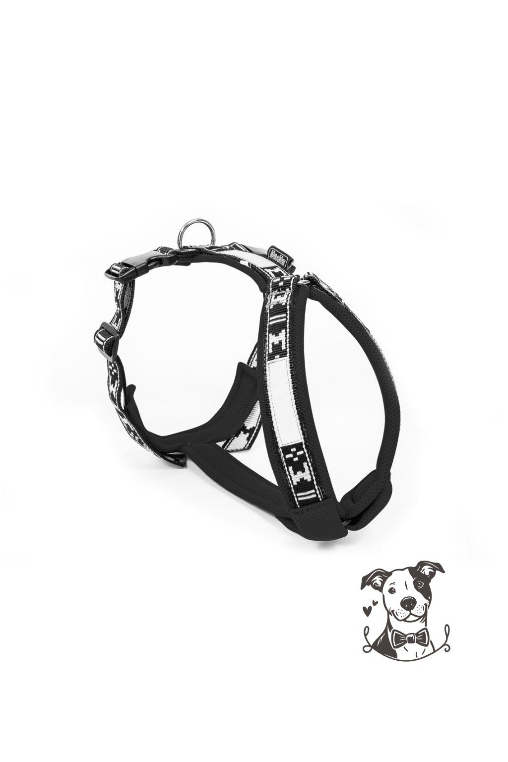 Krátký postroj SMART je jedinečný pro své polstrování, které zakrývá kovové kroužky a zabraňuje dotyku kovu se srstí. Předcházíme tak případným nežádoucím odřeninám a podráždění kůže zejména u psů s citlivější pokožkou a kratší srstí bez podsady.