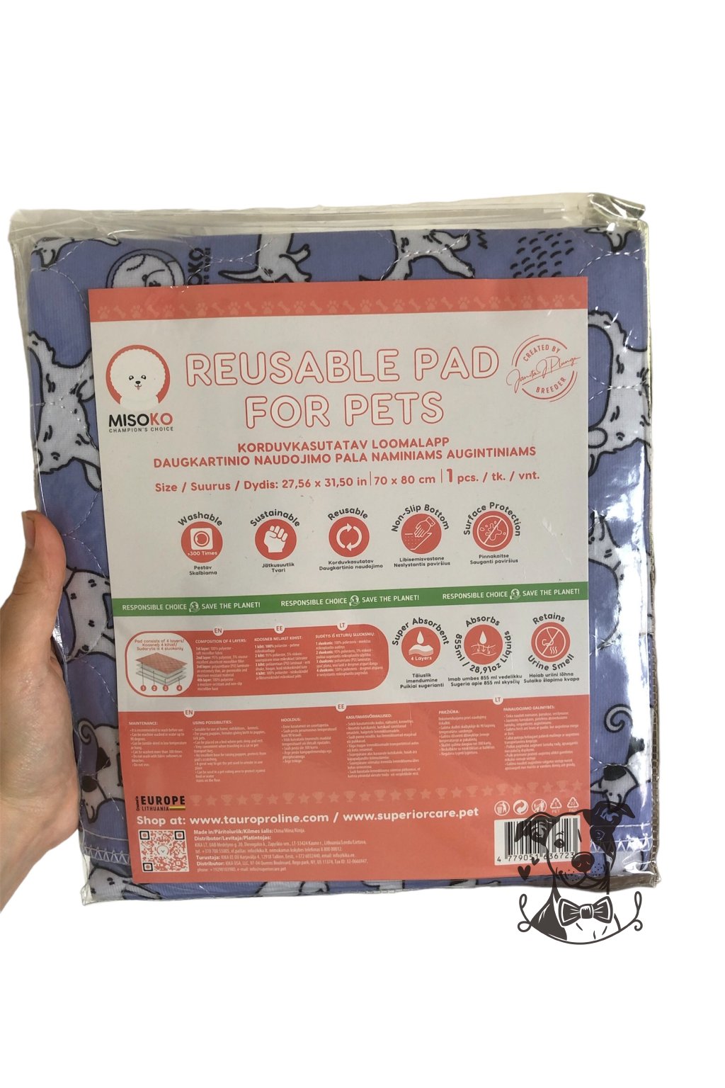 Absorbuje až 500ml tekutiny, což zajistí suché spaní štěňátkům i psím seniorům trpícím inkontinencí.