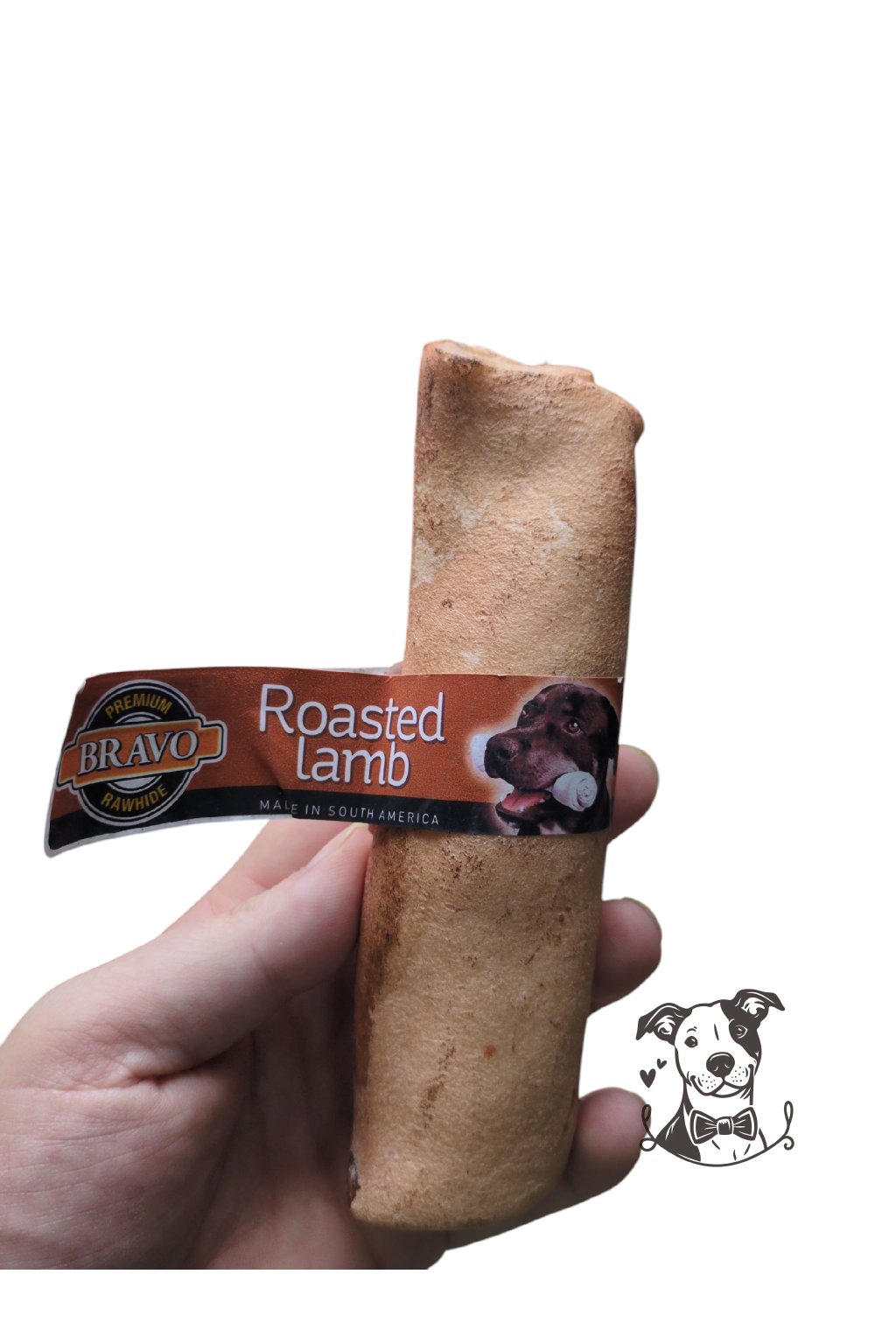 Rolka ze sušené hovězí kůže s příchutí jehněčí pečínky vyrobená v Jižní Americe. Velikosti jednotlivých Bravo pamlsků se mohou mírně lišit, protože se jedná o přírodní, ručně vyráběný produkt.