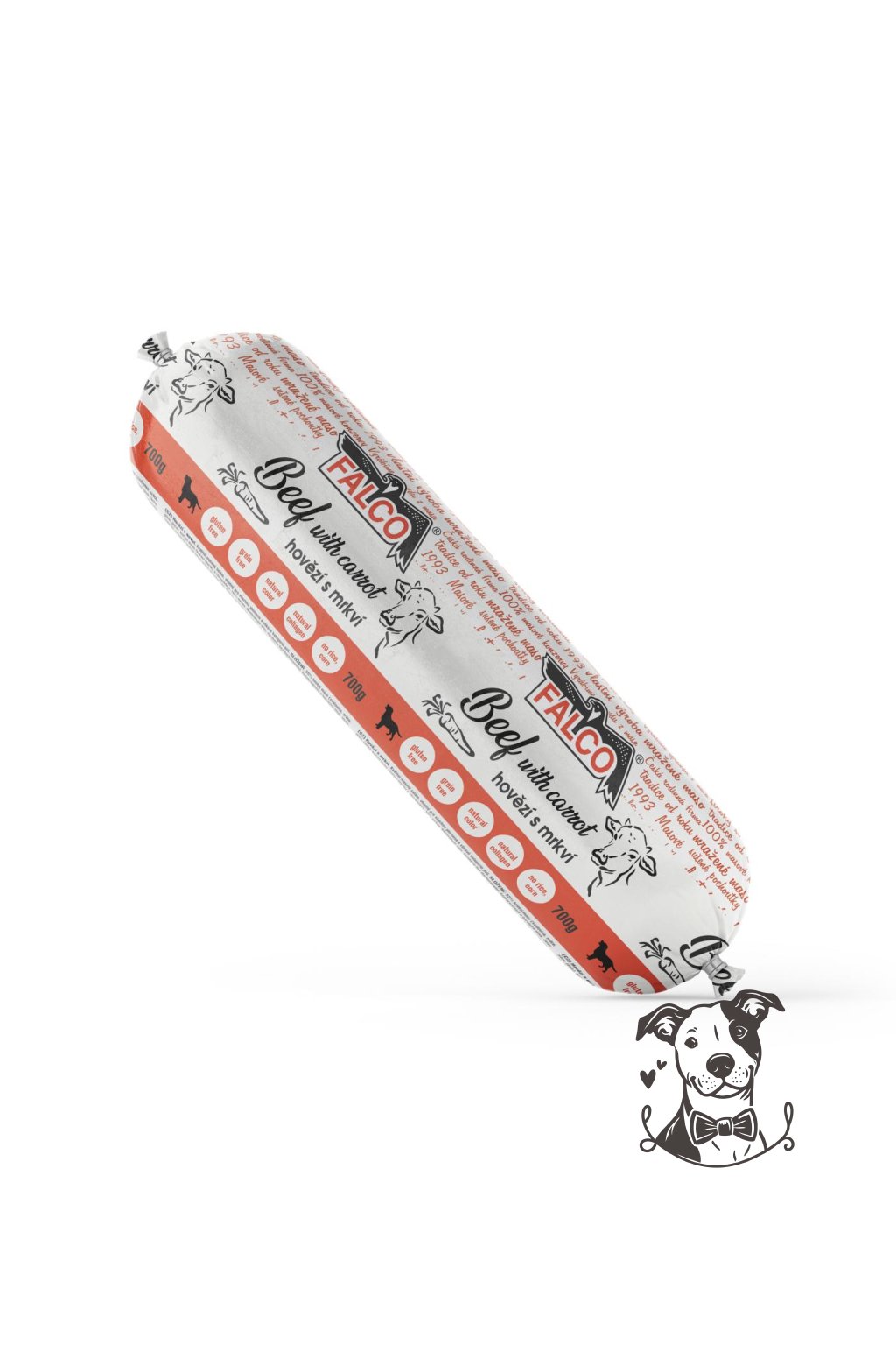 Složení: Hovězí maso (svalovina, srdce, plíce, játra), kuřecí maso (kuřecí čtvrtky a chrupavky), mrkev.