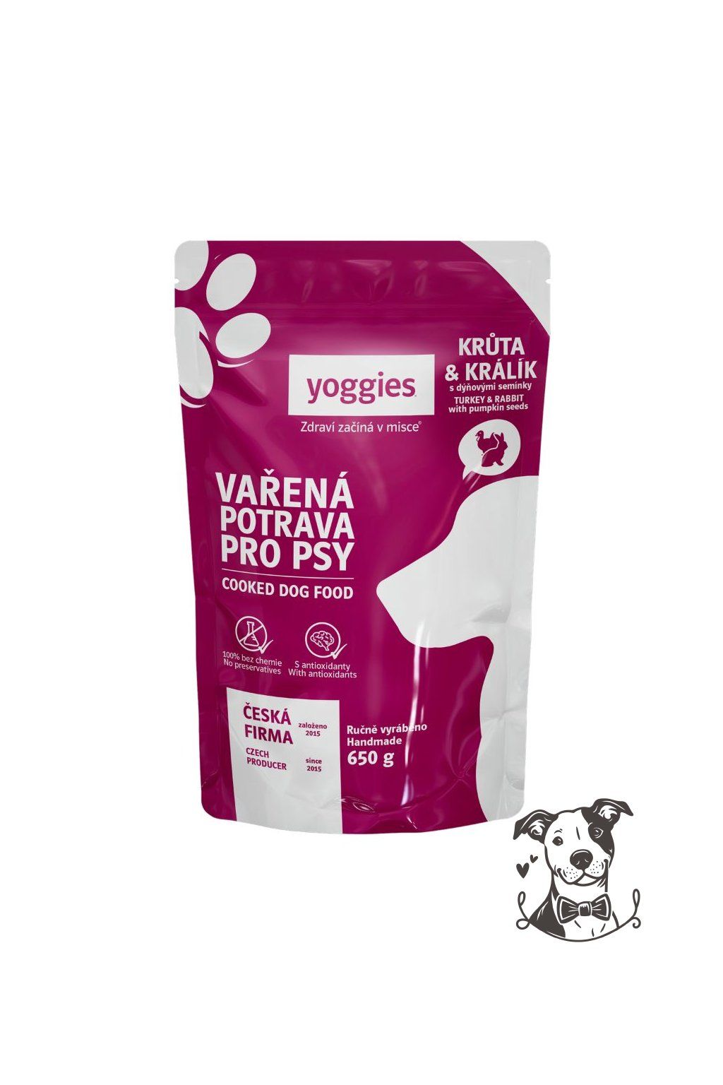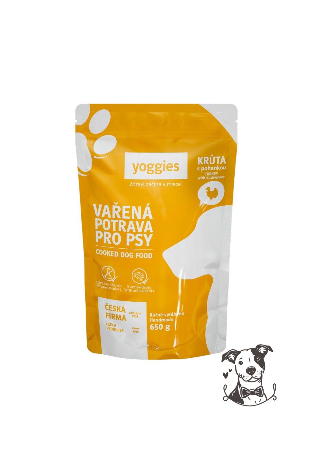 Naší vařenou potravu připravujeme z pečlivě vybíraných surovin převážně potravinářské kvality. Jednotlivé suroviny nakupujeme z prověřených evropských farmových chovů. Nejmodernější postupy a technologie při výrobě pak zaručují zachování všech výživových hodnot, ale i senzorických vlastností jako jsou chuť a vůně. To ocení každý chovatel a zejména čenich jeho psího miláčka. My v Yoggies vaříme bez chemie a dochucovadel protože víme, že zdraví začíná v misce.