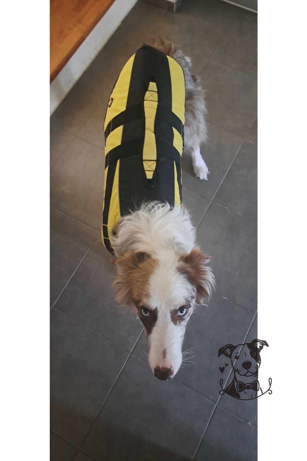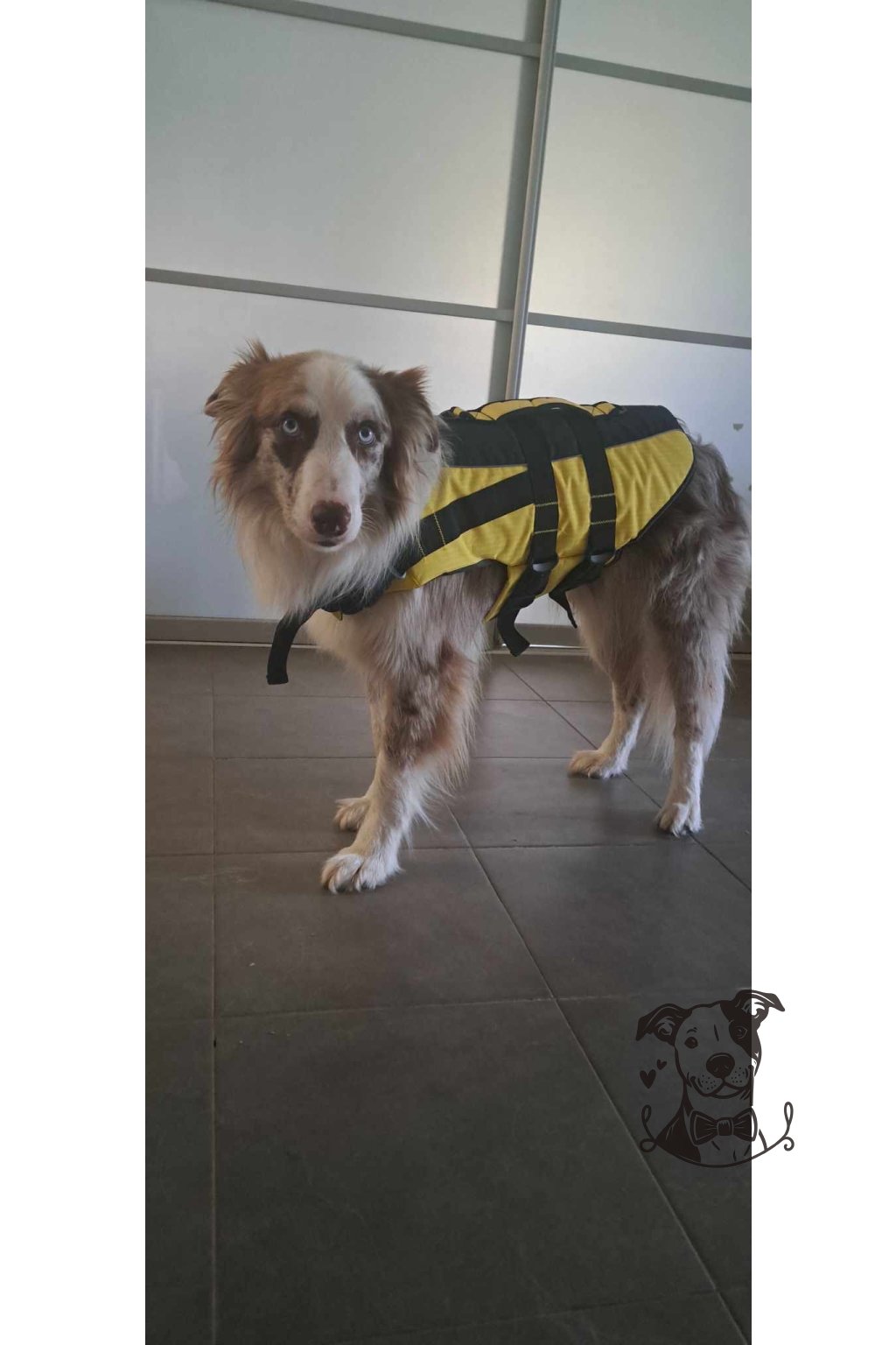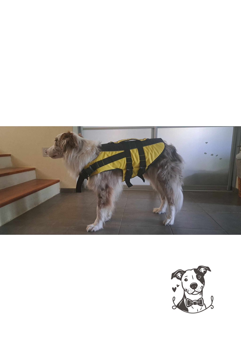 Plovací vesta pro psy ve žlutočerném provedení