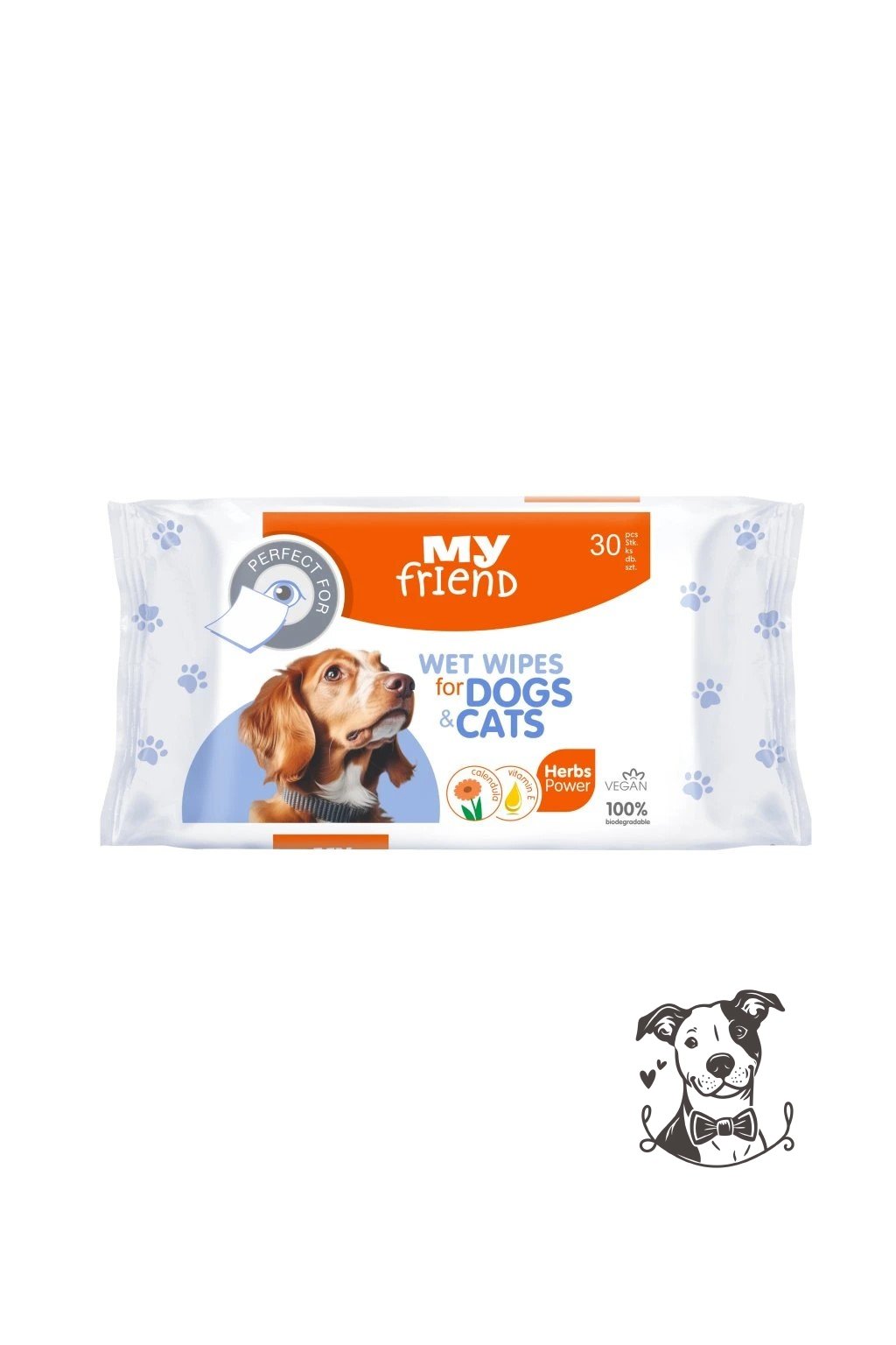 Šetrné ubrousky My friend na oční okolí (30 ks) pro psy a kočky. Bez parfemace, s měsíčkem lékařským a vitamínem E působí protizánětlivě, zklidňují, hydratují a regenerují pokožku. 100 % biologicky odbouratelné.