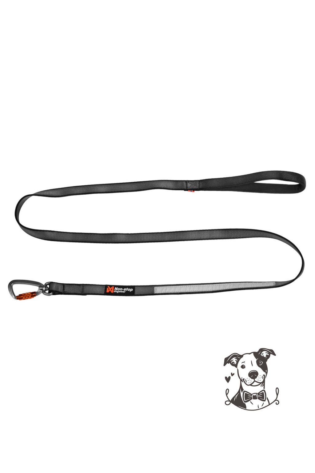 Karabina má automatický zámek Twist-lock, takže drží zavřená, navíc sedí na obratlíku, aby se vodítko nekroutilo.