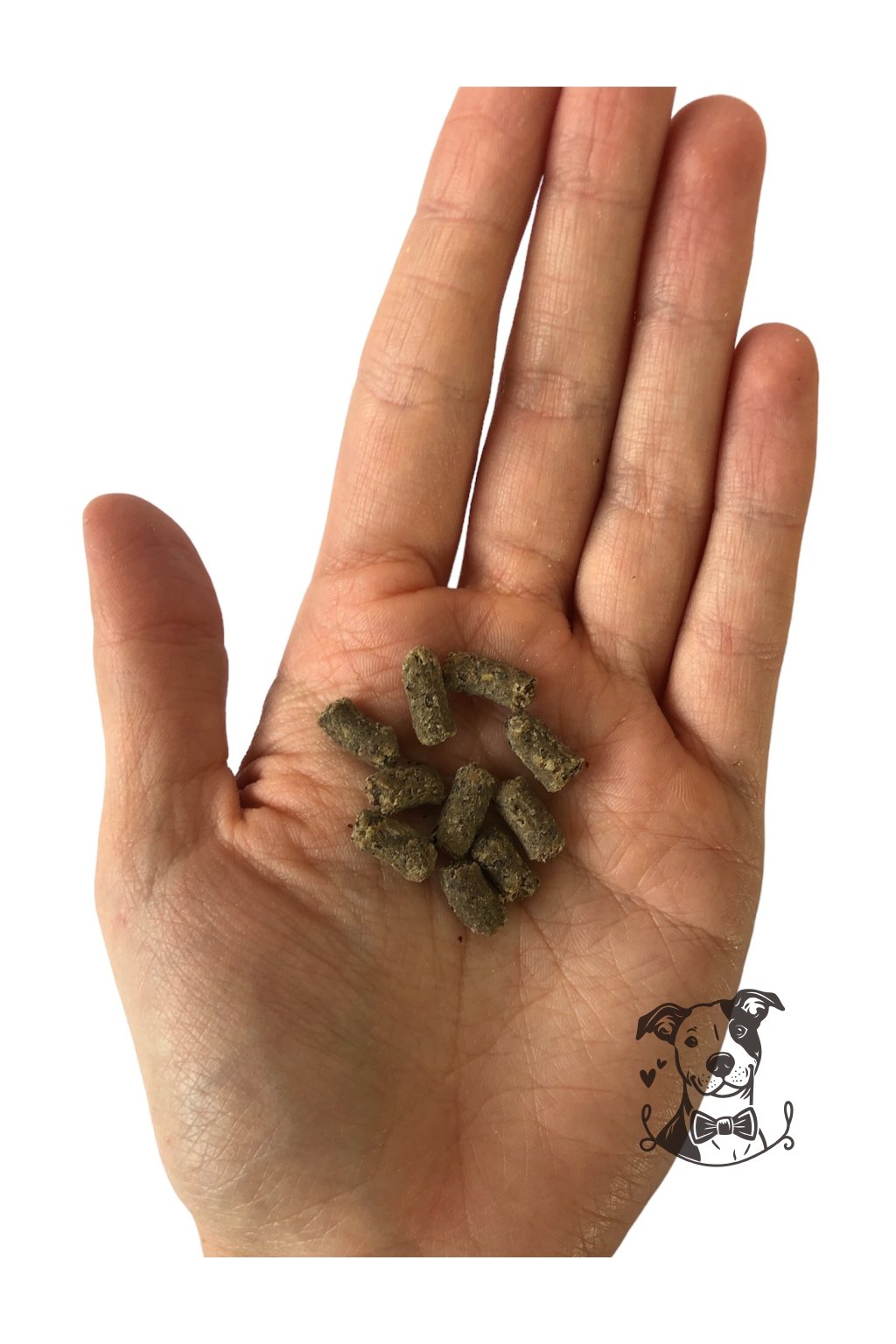 Kromě toho obsahují tyto pamlsky také konopné, lněné a světlicové semeno, které jsou bohaté na omega 3 a omega 6 mastné kyseliny. Tyto kyseliny mají protizánětlivé a protirakovinné účinky, podporují imunitní systém a trávení, a pomáhají udržovat v kondici srdce a cévy pejska.