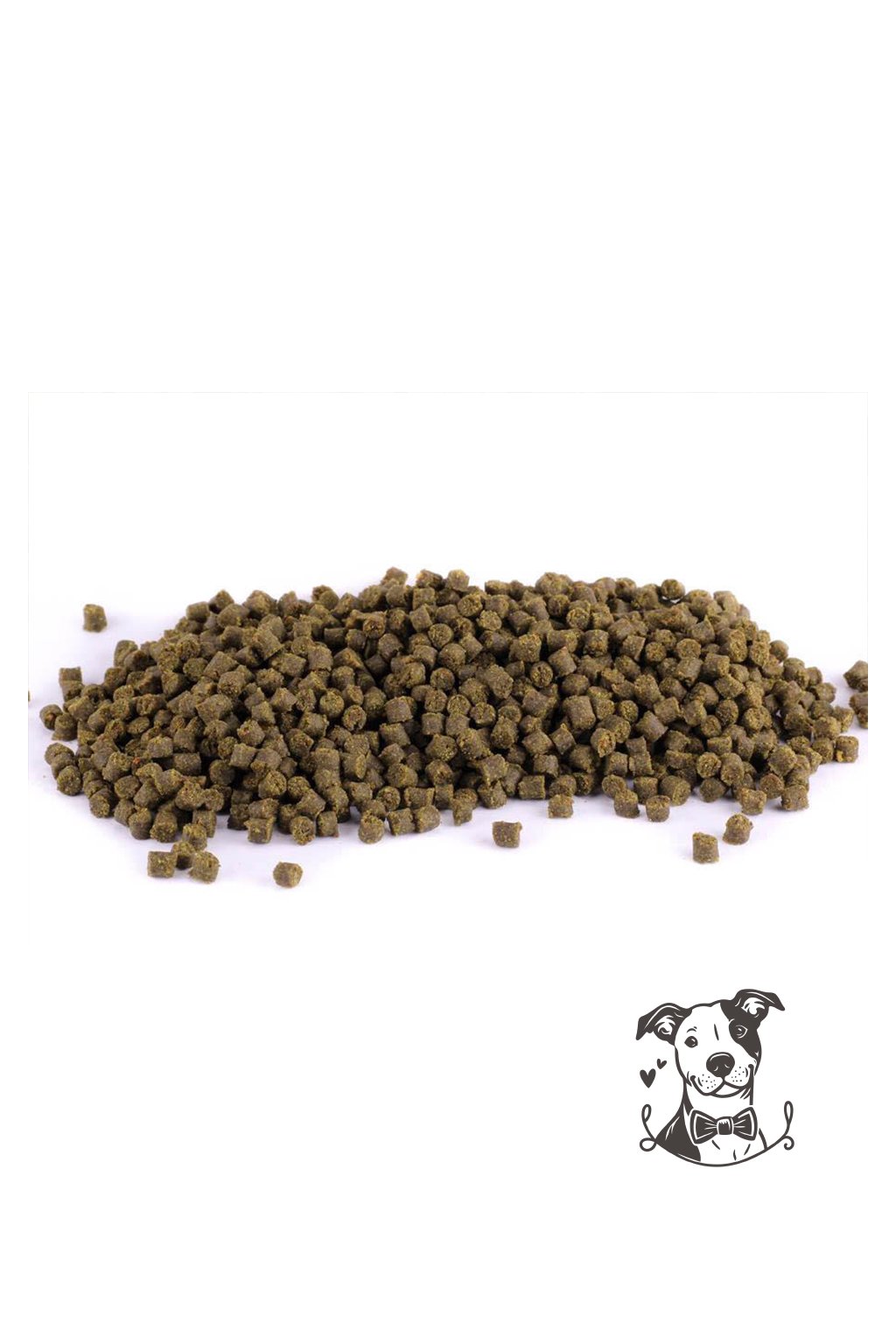 Přidaná řasa kelpa pravidelně pečuje o zdraví zubů a dásní pejska, potlačuje zápach z tlamy a zabraňuje tvorbě zubního kamene.